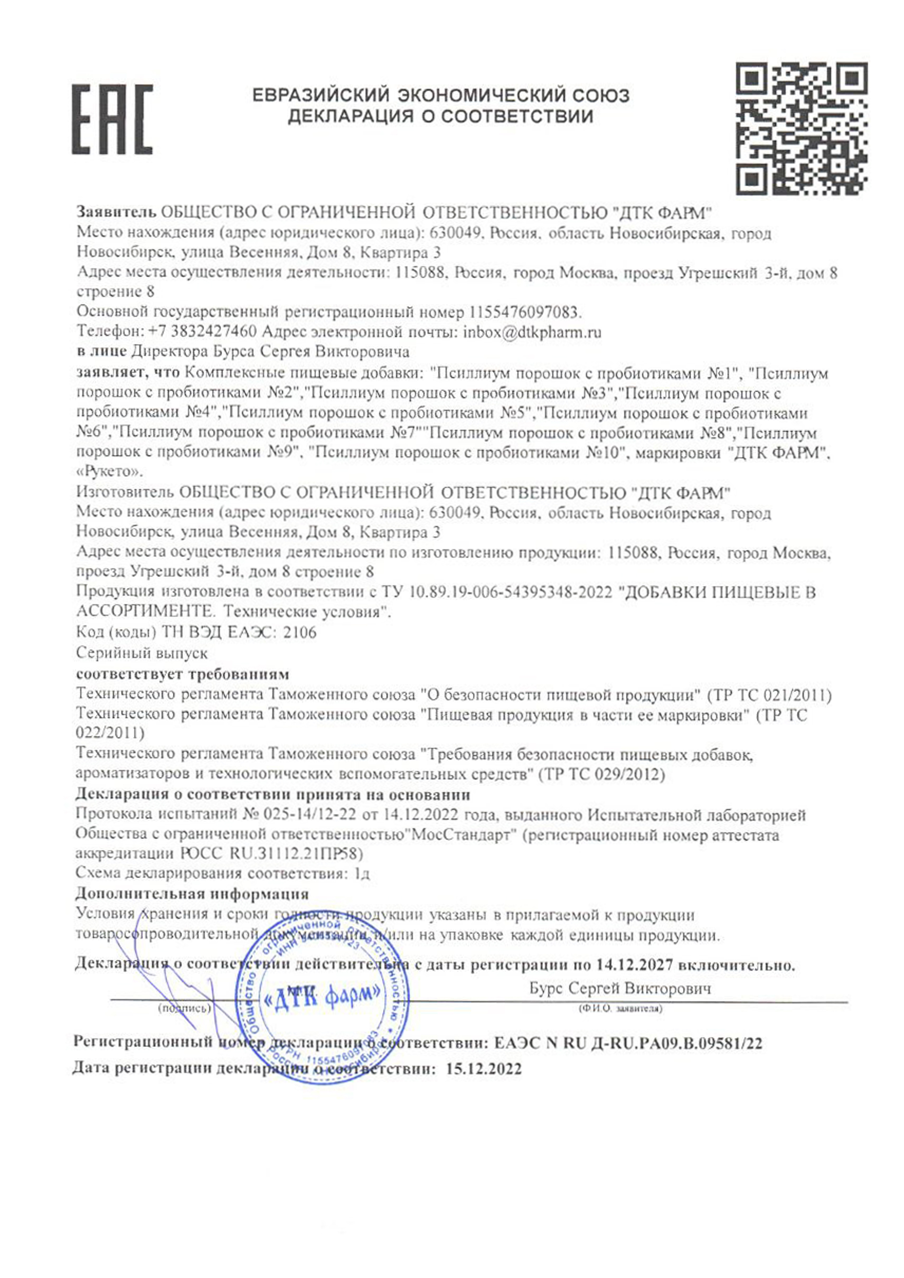 - Pediococcus acidilactici (не менее 5×109 KОE).